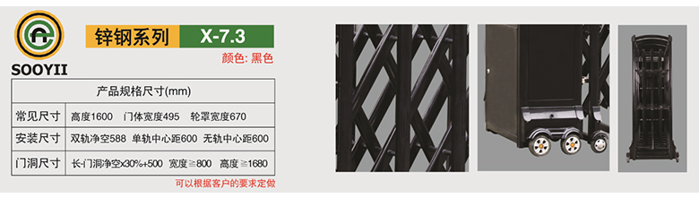鋅鋼電動伸縮門SOOYII-X-7.3性能特點: